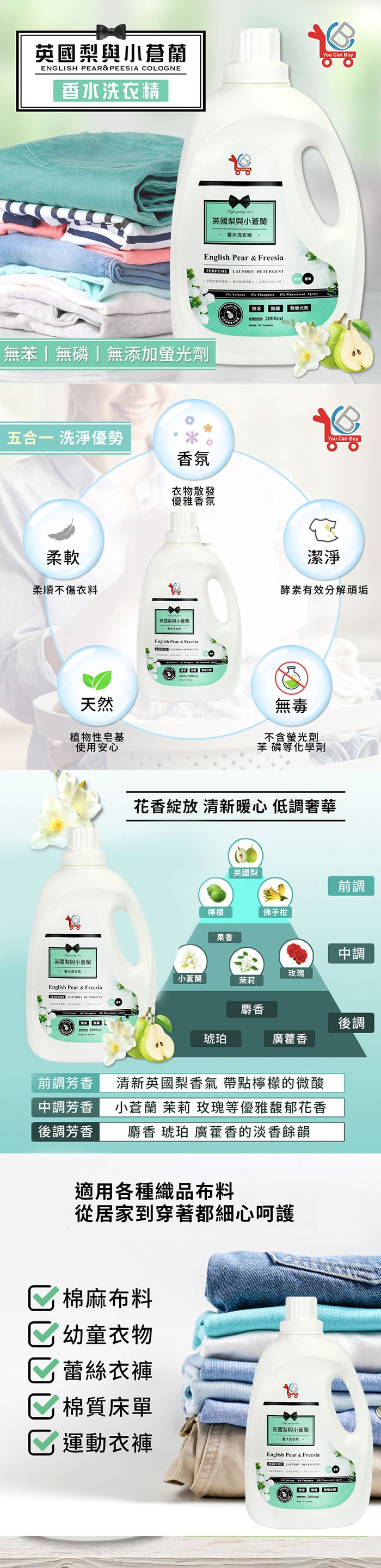 | 【商品名稱】 | You Can Buy 潔淨香氛 英國梨與小蒼蘭香水洗衣精*6瓶(箱購) |