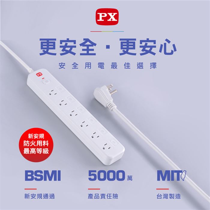 | 商品名稱 | 【PX大通】7切6座6尺電源延長線(1.8公尺) PEC-3766W |