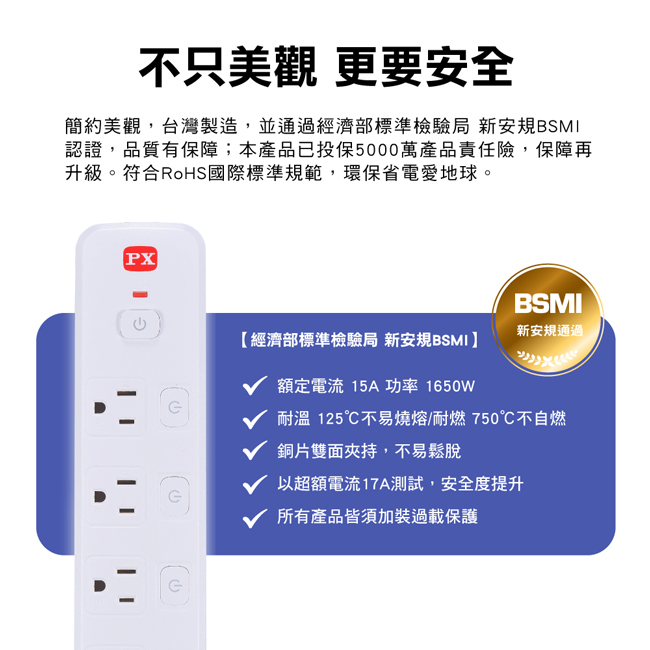 獨立電源廻路開關設計,可控制單一插座電源