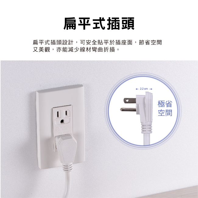 *加大插座間距,方便變壓器使用也不會阻擋相鄰之插座孔,方便又安全