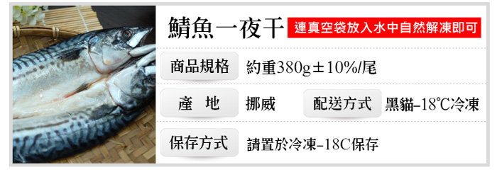 | 商品名稱 | 【築地一番鮮】挪威鯖魚一夜干10尾(380g/尾) |