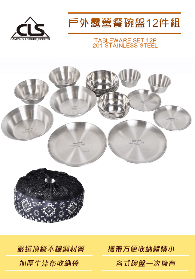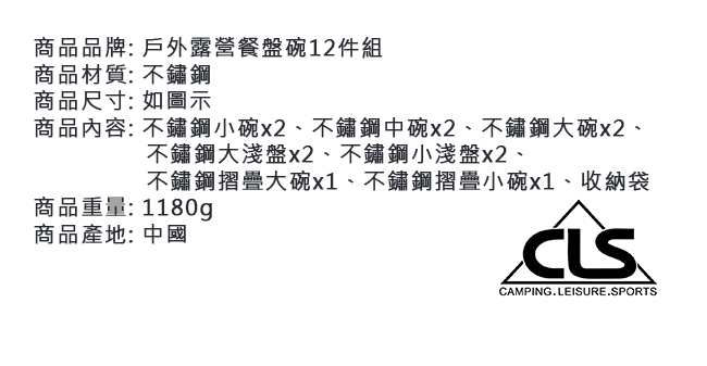 | 【商品名稱/型號】 | 【韓國CLS】戶外野營不鏽鋼餐碗盤12件組(附收納包)/露營/野餐 |