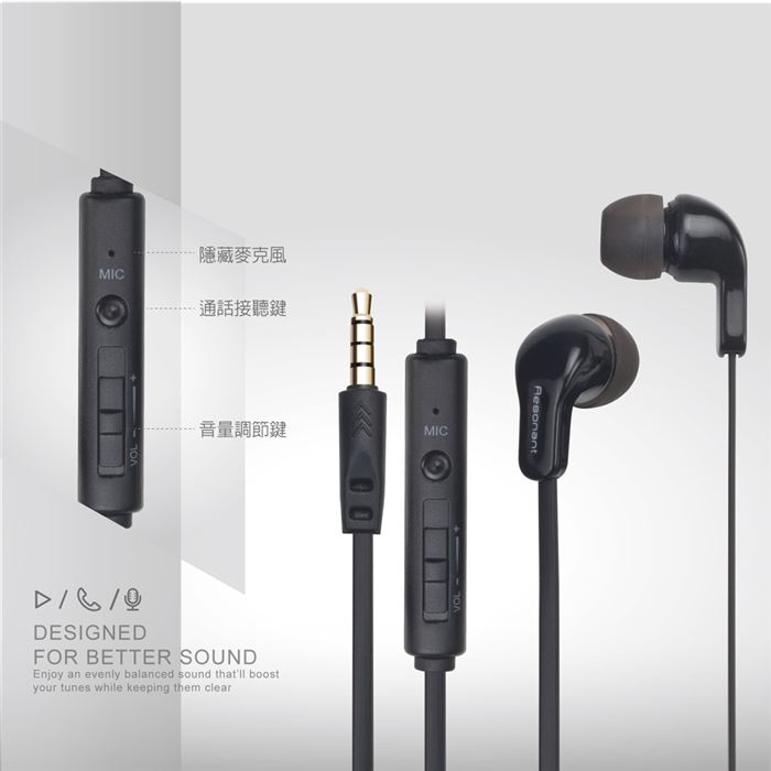 內建接聽鍵 / 附音量調節器 / 隱藏式麥克風