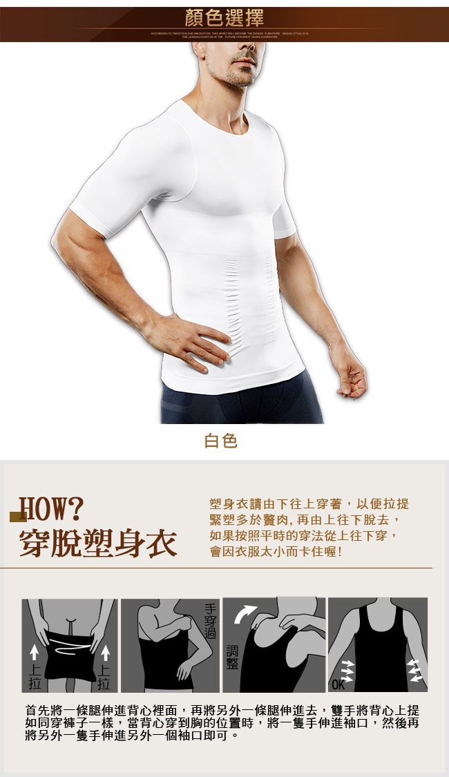 | 商品名稱 | 【Charmen】 NY094 加壓束胸收腹無痕緊身短袖 男性塑身衣 白L*2 |