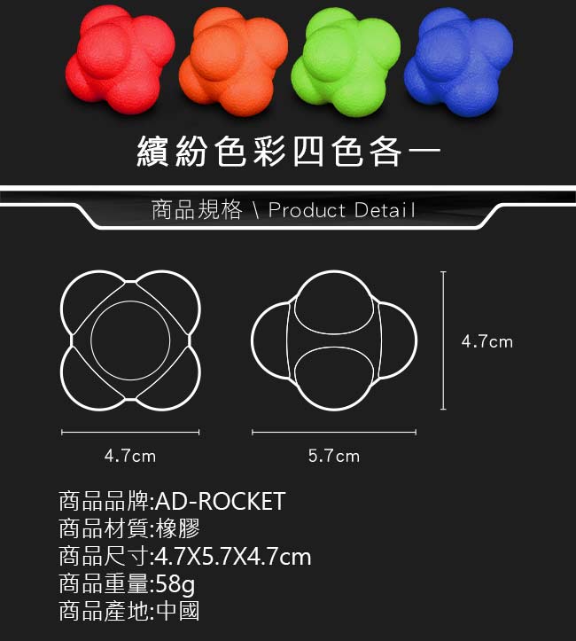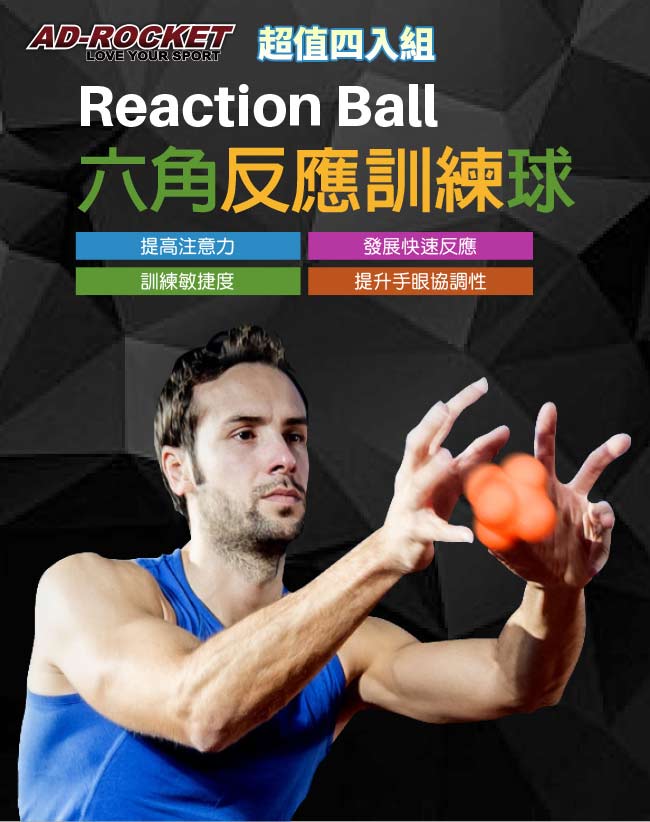 | 【商品名稱或型號】 | 【AD-ROCKET】六角反應訓練球 超值四入組 |