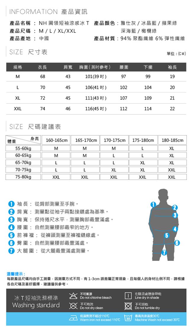 | 商品名稱 | 【Naturehike】圓領短袖涼感冰T-男款(冰晶藍L) |