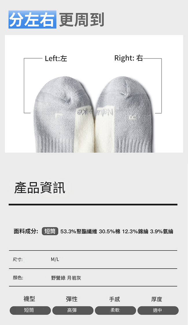 | 【商品名稱或型號】 | 【Naturehike】輕量減震舒適短襪 ZI010 |