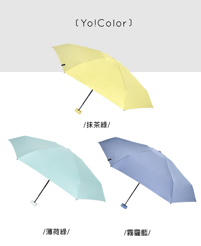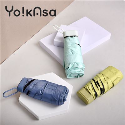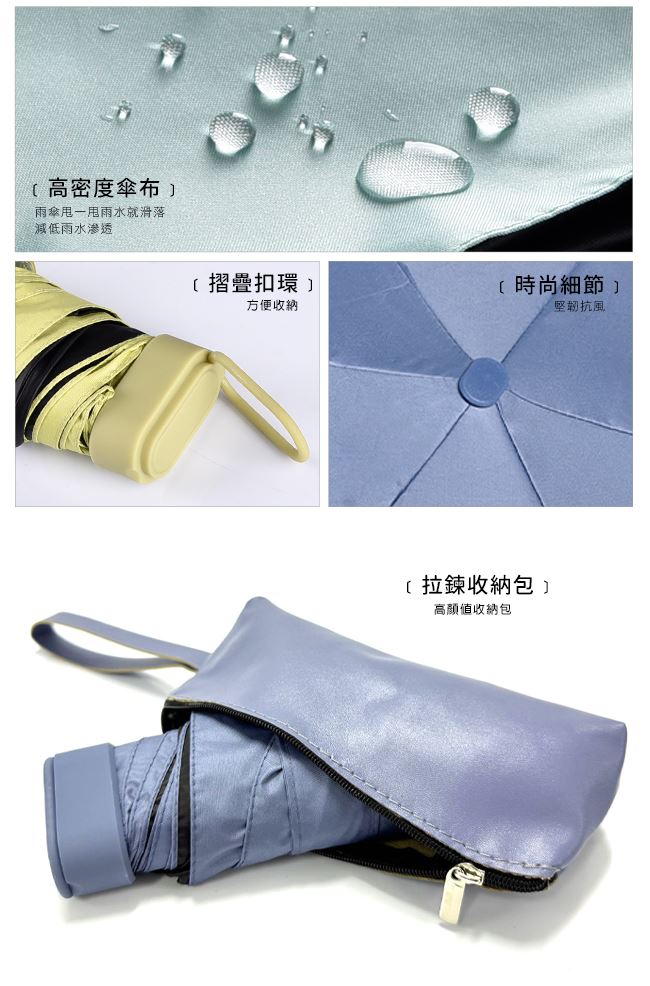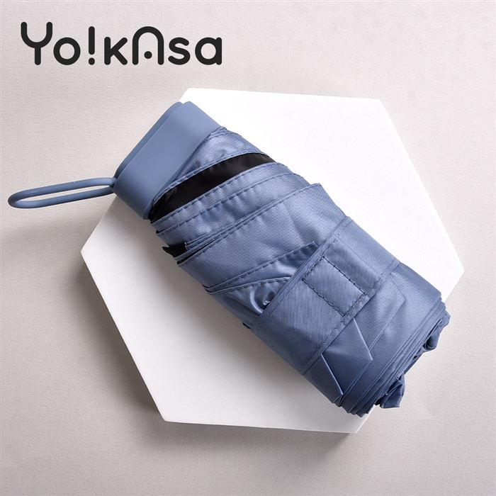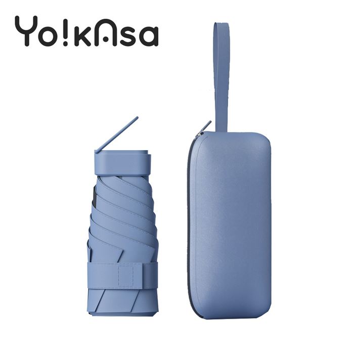 | 【商品名稱或型號】 | 【Yo!kAsa】極致輕量防曬抗UV六折迷你扣環黑膠傘贈收納包-霧霾藍 |