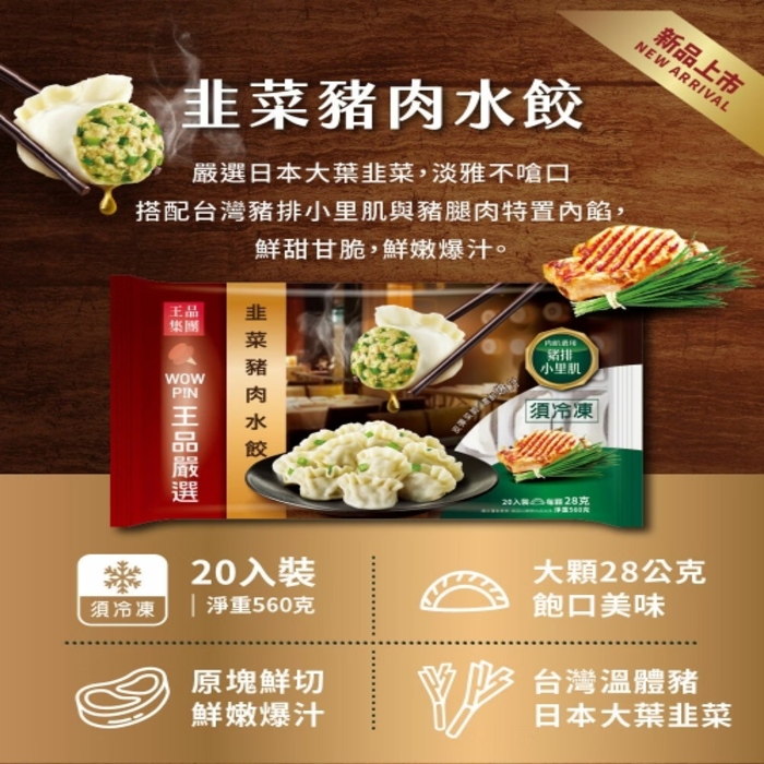 | 商品名稱 | 王品嚴選韭菜豬肉水餃 |
