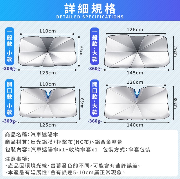| 【商品名稱】 | 汽車遮陽傘開口款(尺寸可選) |