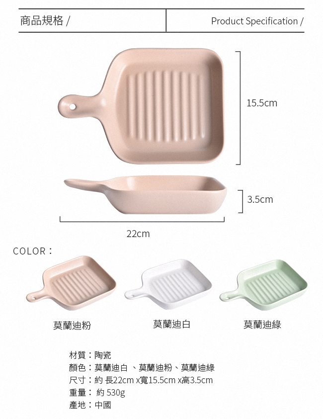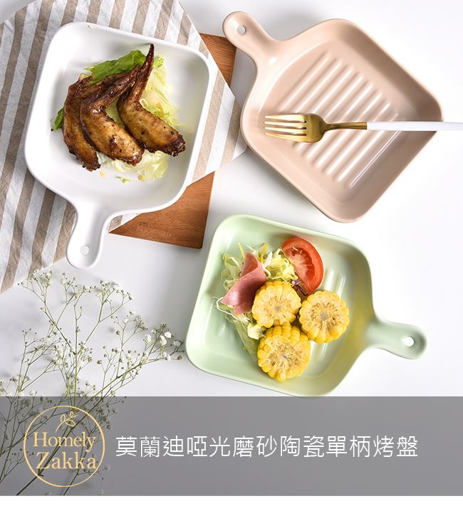 | 商品名稱 | 【Homely Zakka】莫蘭迪啞光磨砂陶瓷單柄烤盤22cm_3色任選 |