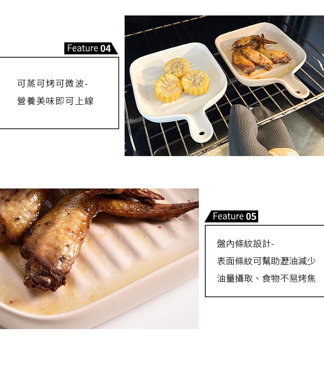 盤內條紋設計-表面條紋可幫助瀝油減少油量攝取