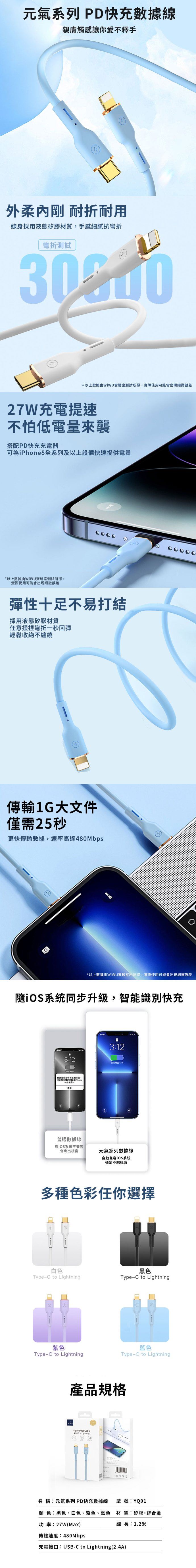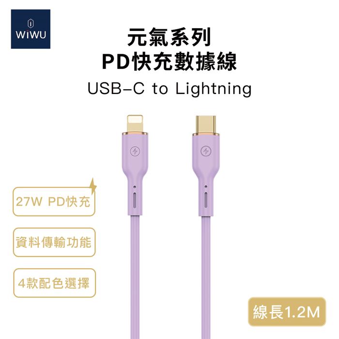 | 商品名稱 | WiWU 元氣系列 27W PD快充數據線 Type-C to Lightning 1.2M YQ |