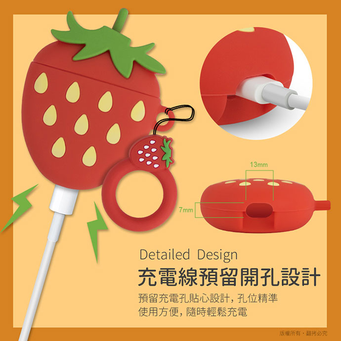 .包裝內含:矽膠保護套(上套+下套) x1、掛飾 x1(草莓、鳳梨、紅蘿蔔)