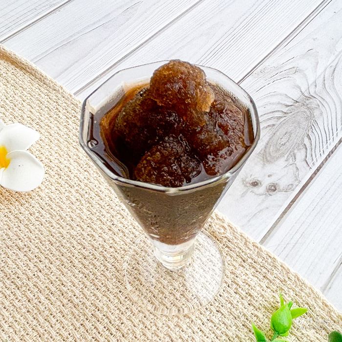 融合傳統與現代風味,仙草膠與冰塊一同攪拌