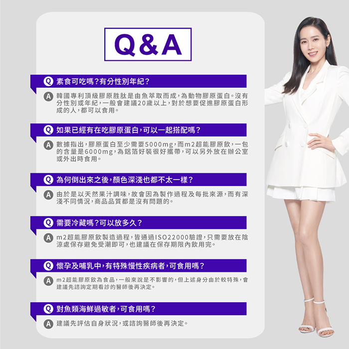 | 注意事項 | 1、本產品使用植物萃取、膠原蛋白及天然果汁等成分,可能因季節變化而風味略微不同,如有色澤差異或沉澱物屬正常現象,請安心食用。 2、孕乳婦、服用藥物或有其他疾病者,請先徵詢醫(藥)師意見再行食用。 3、開封後為維持產品新鮮度,請儘速食用完畢。 4、產品若有破裂、滲漏或不正常膨脹等現象,請勿食用。 5、本產品含魚類及其製品,不適合對其過敏體質者食用。 6、三歲以下孩童不得使用,請置於無法取得處。 |