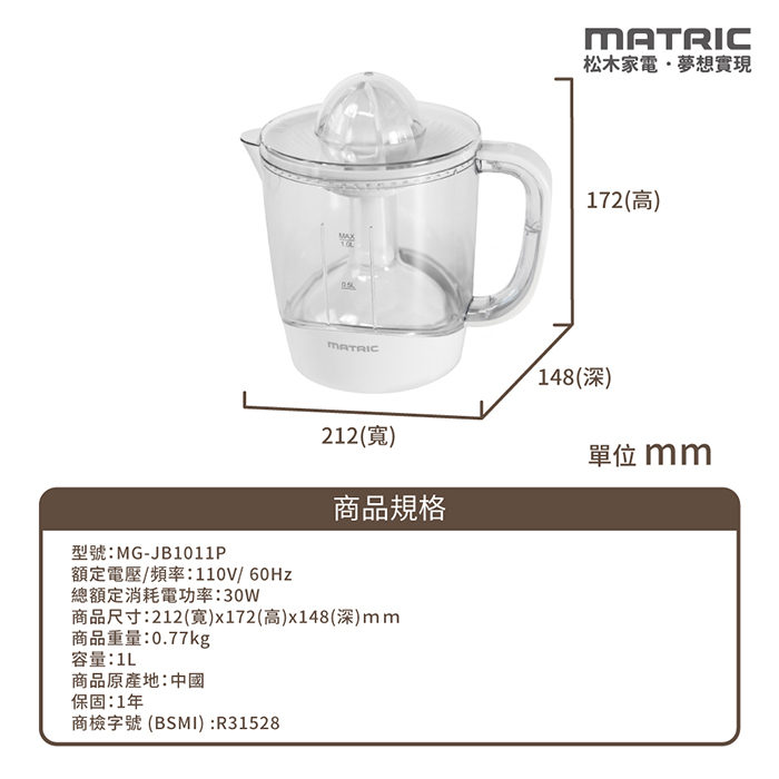 | 【商品名稱】 | 【MATRIC 松木】速纖電動高效榨汁機 |