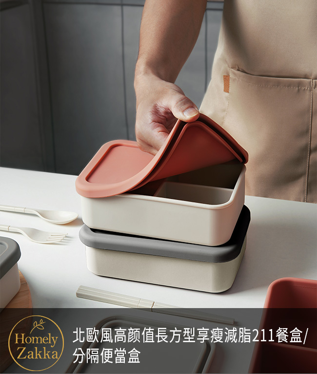 | 商品名稱 | 【Homely Zakka】北歐風高颜值撞色長方型享瘦減脂211餐盒/分隔便當盒_2色一組(北歐粉+北歐灰) |