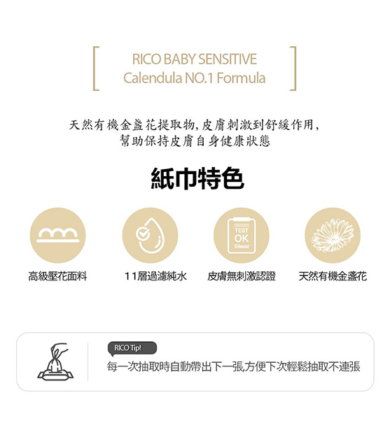 | 商品名稱 | 韓國RICO baby|金盞花有機天然厚款濕紙巾Sensitive 80抽-12入 |