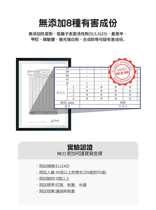 | 成分 | 超純水(11階淨化)、天然提取物(金盞花、洋甘菊、蘆薈、薰衣草、茶樹、藍桉、積雪草、馬齒莧、綠茶)、膠束水、苯甲酸鈉、乙基己基甘油、檸檬酸、辛乙二醇、聚山梨醇酯-20 |