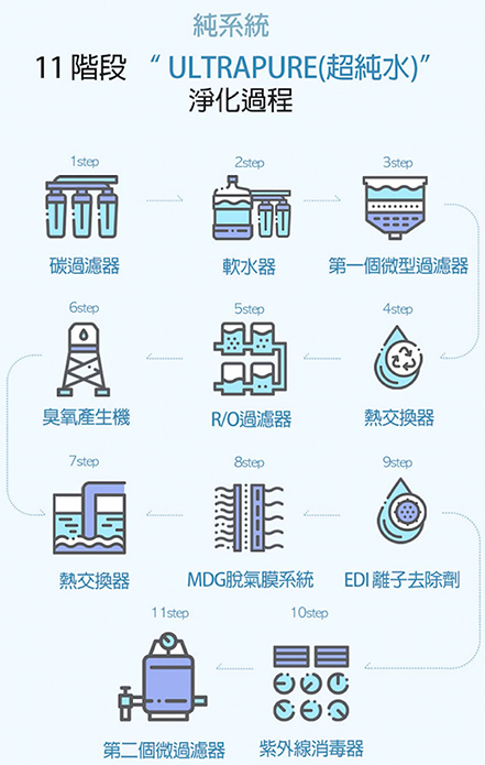 11階淨化,去除殘留離子、殺死細菌、純水而製