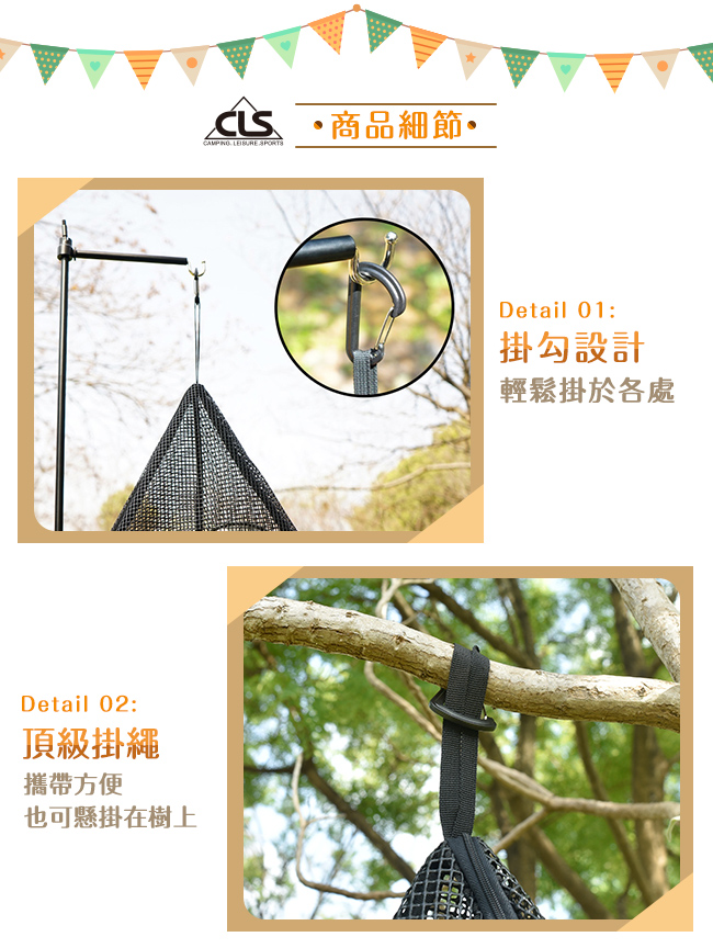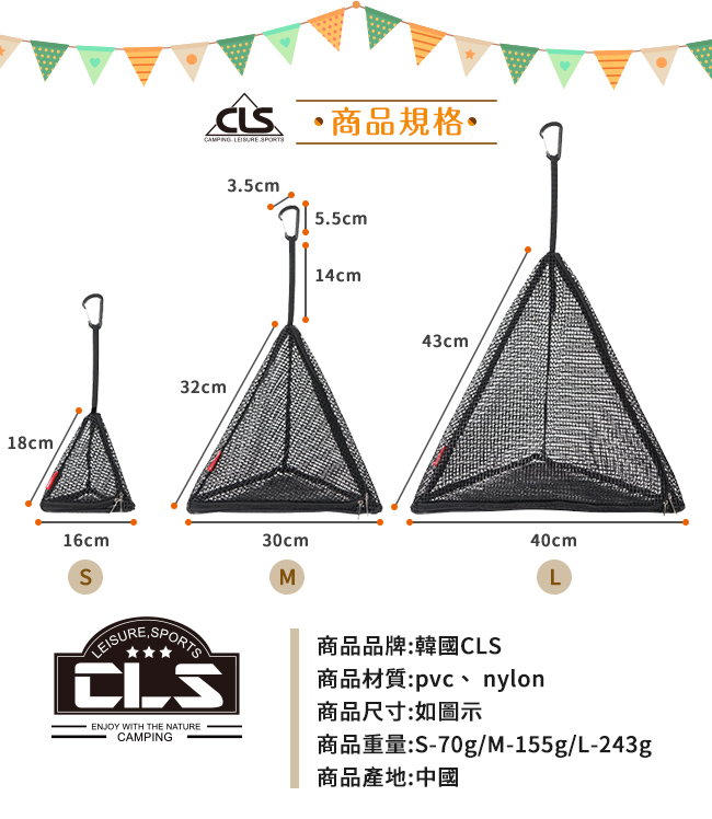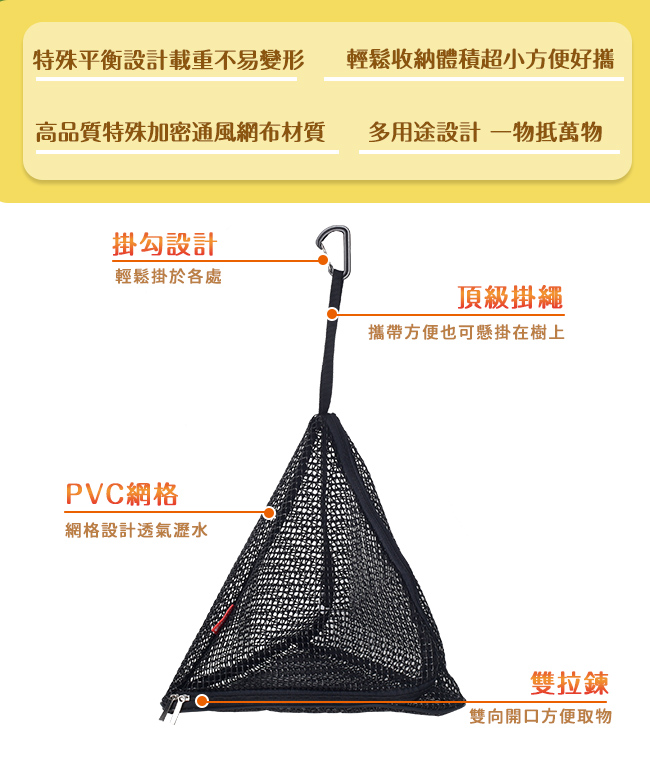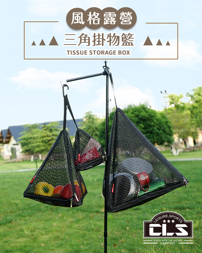 | 【商品名稱/型號】 | 【韓國CLS】風格露營 三角掛物籃/露營/野炊/野餐(S) |