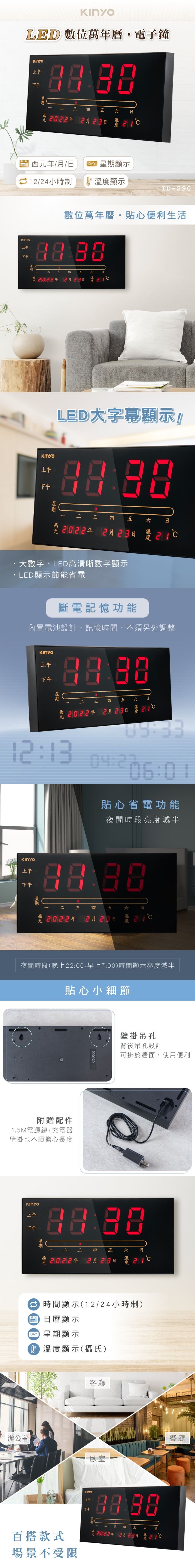 | 商品名稱 | 【KINYO】 LED數位萬年曆電子鐘 TD-290 |