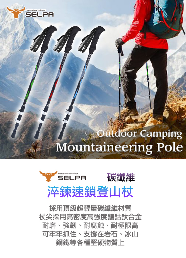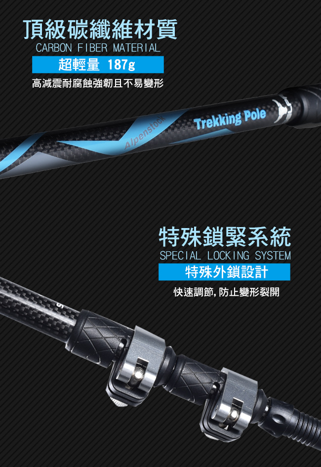 | 【商品名稱或型號】 | 【韓國SELPA】淬鍊碳纖維外鎖登山杖(藍色+隨機) |