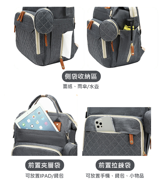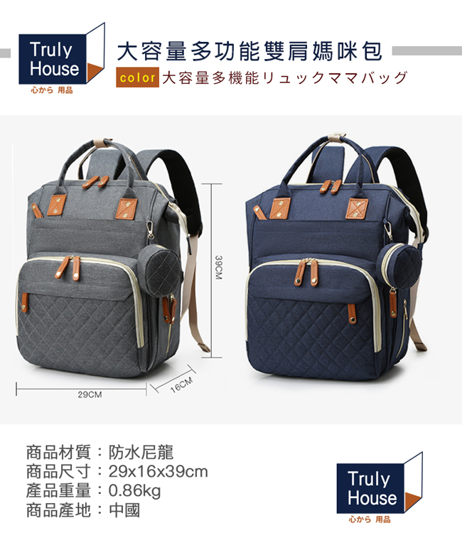 | 【商品名稱】 | 【Truly House】大容量多功能雙肩媽咪包/媽媽包/育兒包(灰色) |