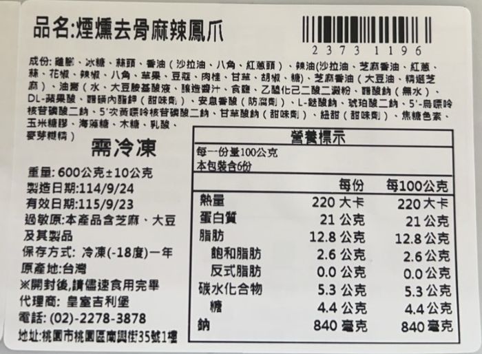 | 過敏原資訊 | 本產品含有芝麻、大豆及其製品 |