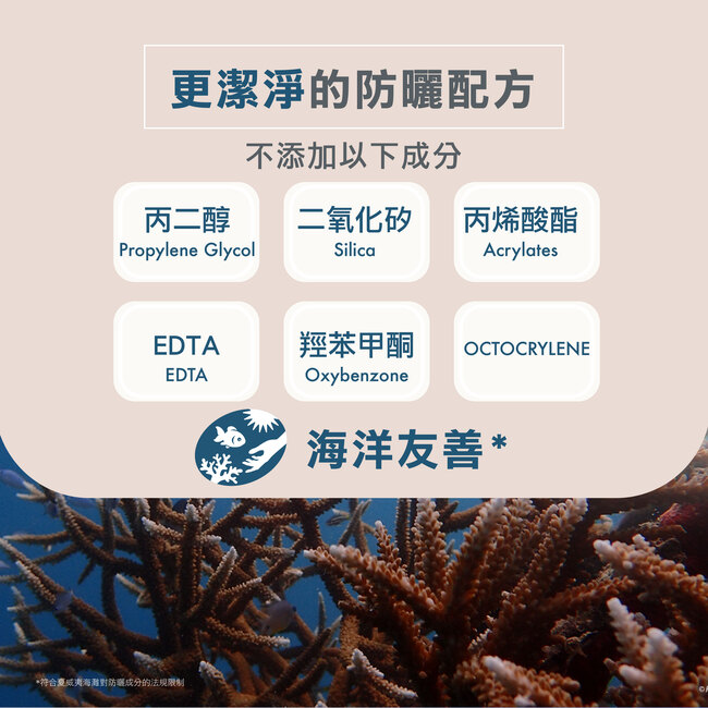 海洋友善配方,無添加矽靈或親水性防曬劑