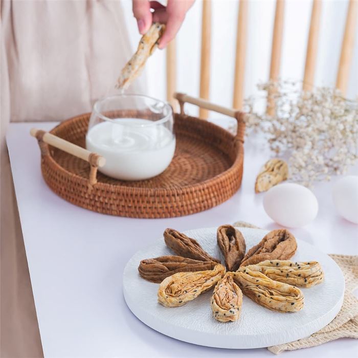 再以摺疊的方式精心製作出每一個香氣馥郁、酥脆爽口的蛋捲。
