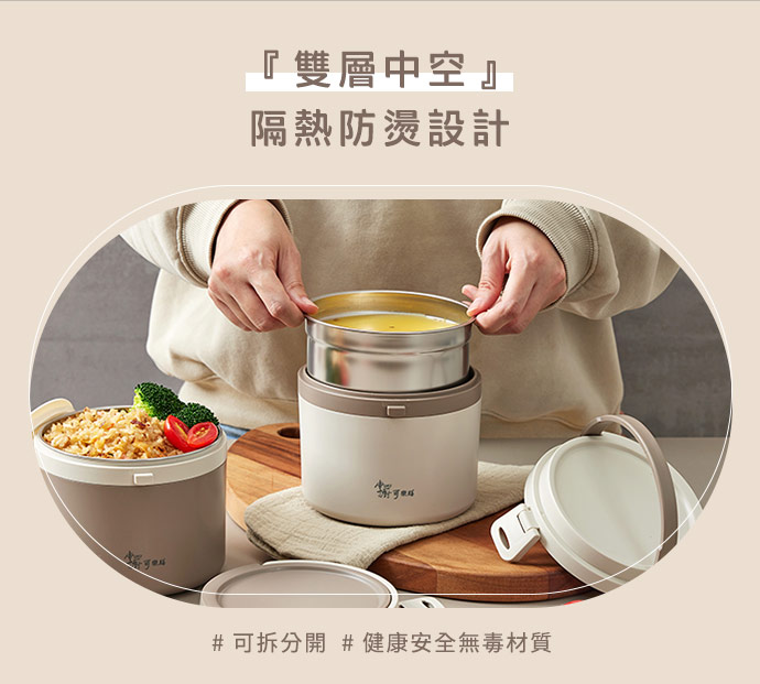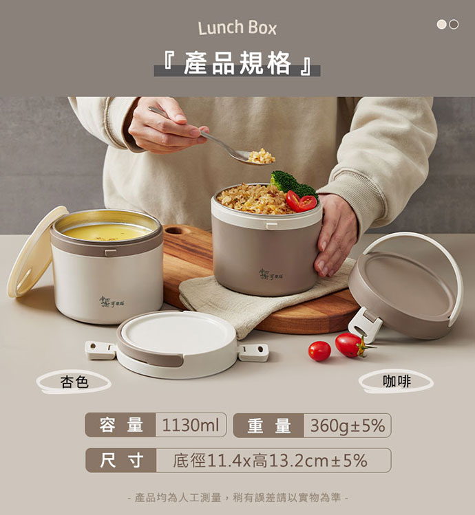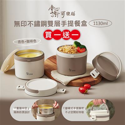 | 內容物 | 買一送一【掌廚可樂膳】無印不鏽鋼雙層手提餐盒1130ml(咖+杏) |