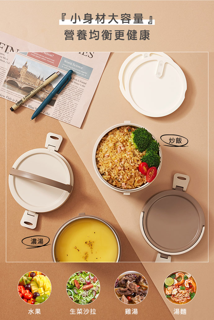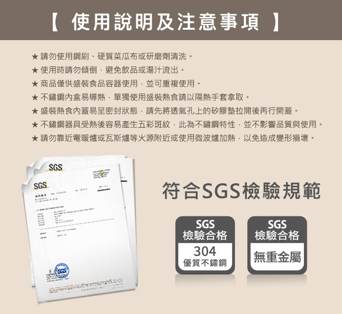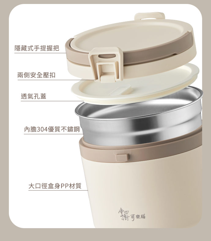 | 成分 | 罐身/(內)304(18/8)優質不鏽鋼、(外)聚丙烯PP(耐熱100°C) 外蓋/聚丙烯PP(耐熱100°C) 內蓋/聚丙烯PP(耐熱100°C)+ 矽膠(耐熱120°C) |
