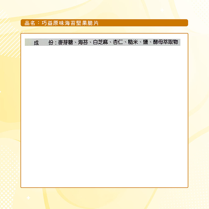 | 商品名稱 | 【巧益】海苔堅果脆片(36g)_12包組 |