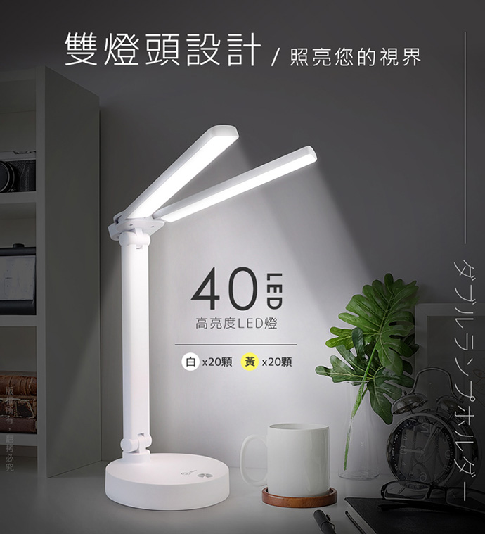 .商品名稱:aibo 雙頭多角度 充電式智能觸控 LED摺疊檯燈(三段色溫)