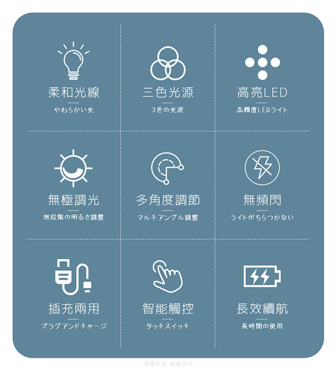 | 內容物 | 檯燈 x1、充電線 x1、說明書 x1 |