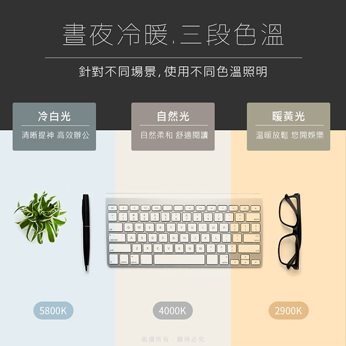 ◆冷白光/暖黃光/自然光,3色光源營造不同氛圍,短按即可切換