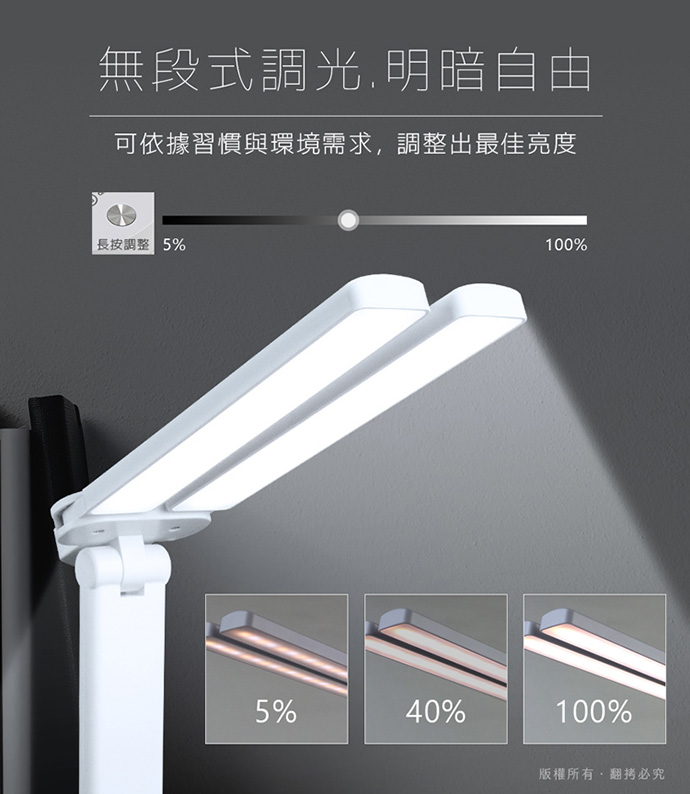 ◆無極調光設計,讓亮度調整更加彈性,長按即可切換