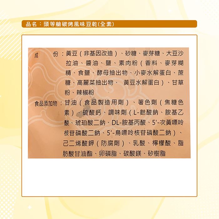 | 商品名稱 | 【頭等艙】炭烤風味豆乾(全素)(300g/包)_12包組 |