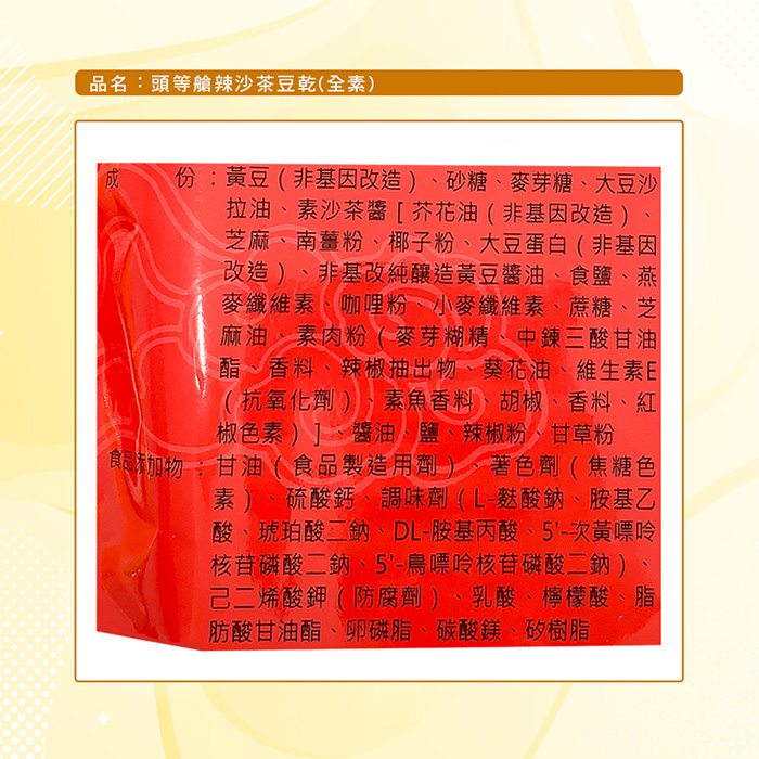 | 商品名稱 | 【頭等艙】辣沙茶風味豆乾(全素)(300g/包)_12包組 |