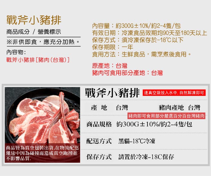 | 商品名稱 | 戰斧小豬排6包(300g/約2-4支/包) |