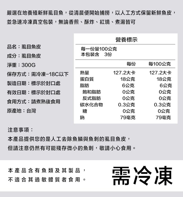 | 內容物(完整成份/食品添加物) | 虱目魚皮 |