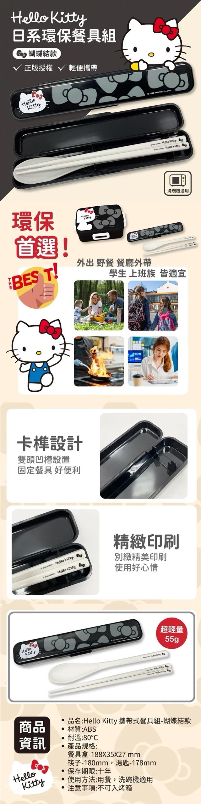 | 內容物 | Hello Kitty 蝴蝶結款日系環保餐具 |