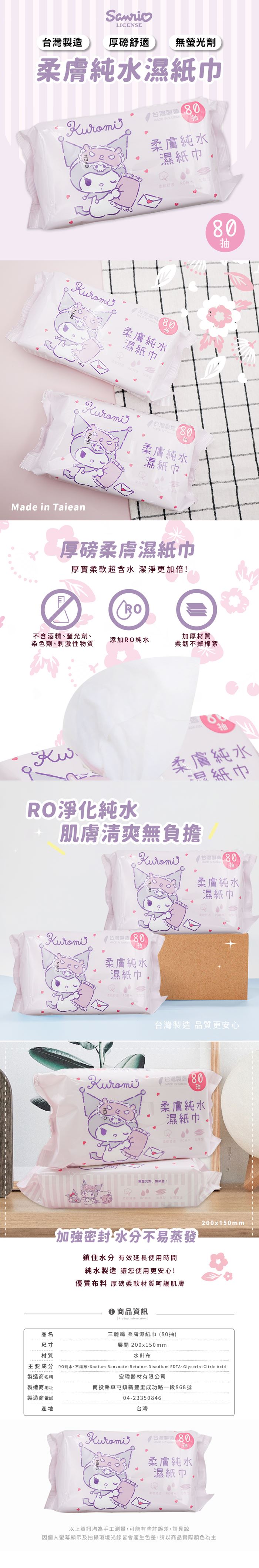 | 商品名稱 | 三麗鷗80抽柔膚濕紙巾-抱枕酷洛米(40包/箱) |