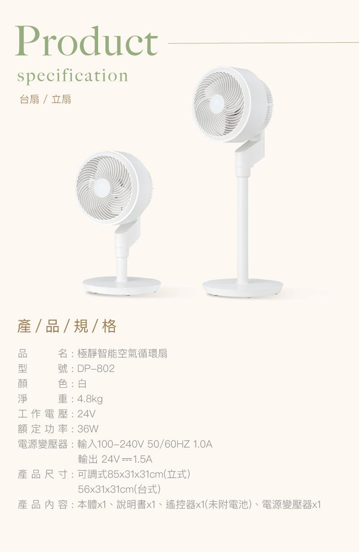| 商品名稱 | 【decopop】淨離子極靜智能循環扇 DP-802 |