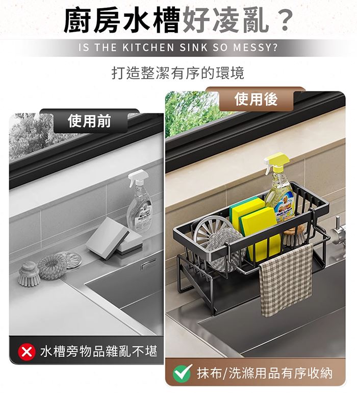 💦可拆卸式帶桿掛勾,晾曬抹布更靈活