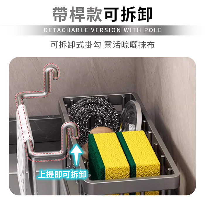 可拆卸式帶桿掛勾,晾曬抹布更靈活