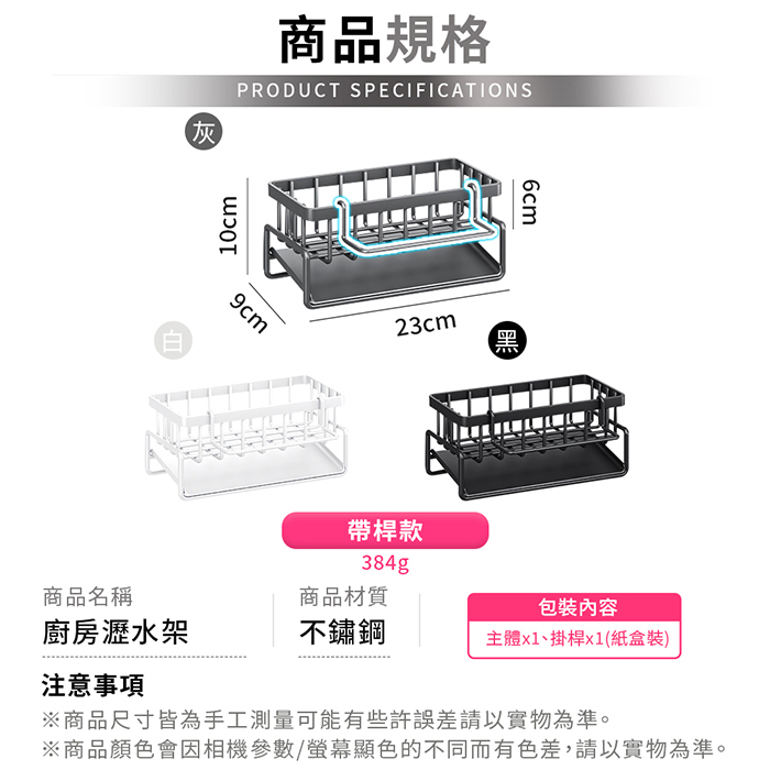 | 商品名稱 | 廚房瀝水架-帶桿款(3色可選) |