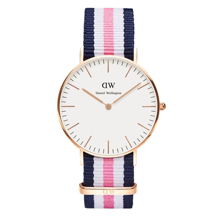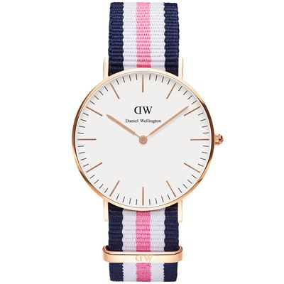| 商品名稱 | Daniel Wellington 藍白粉紅尼龍錶帶-金框/36mm(0506DW) |